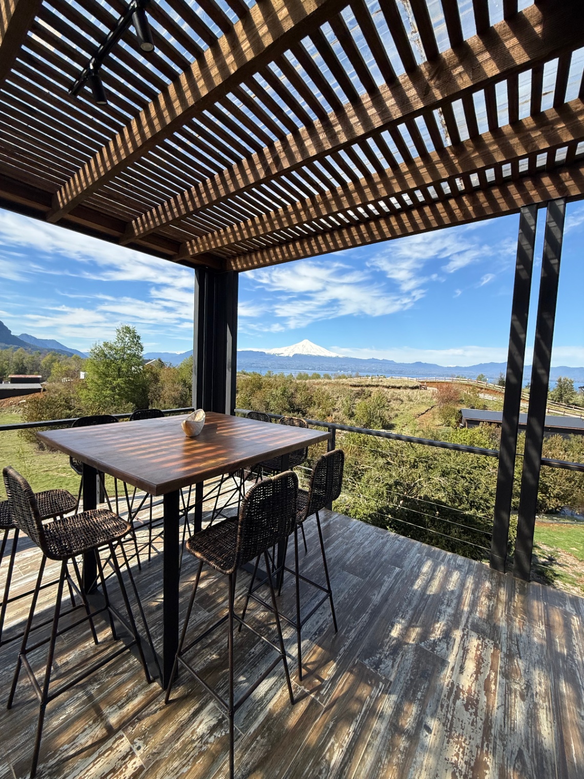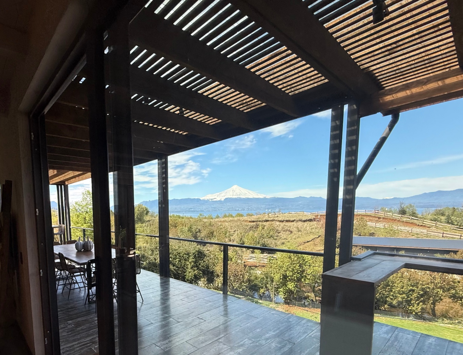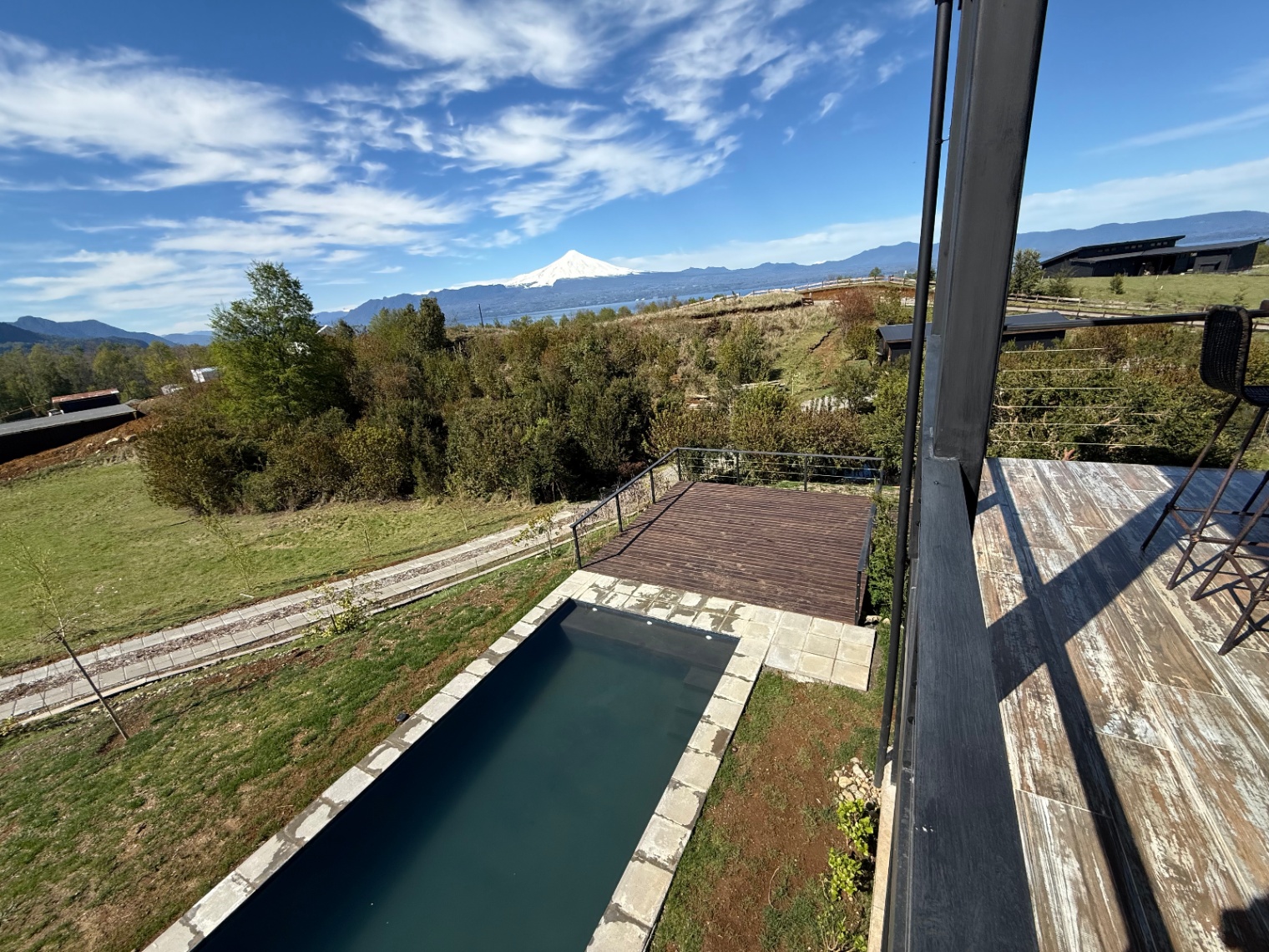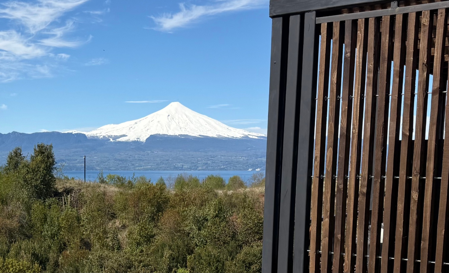 – Vista al lag y al volcán Villarrica