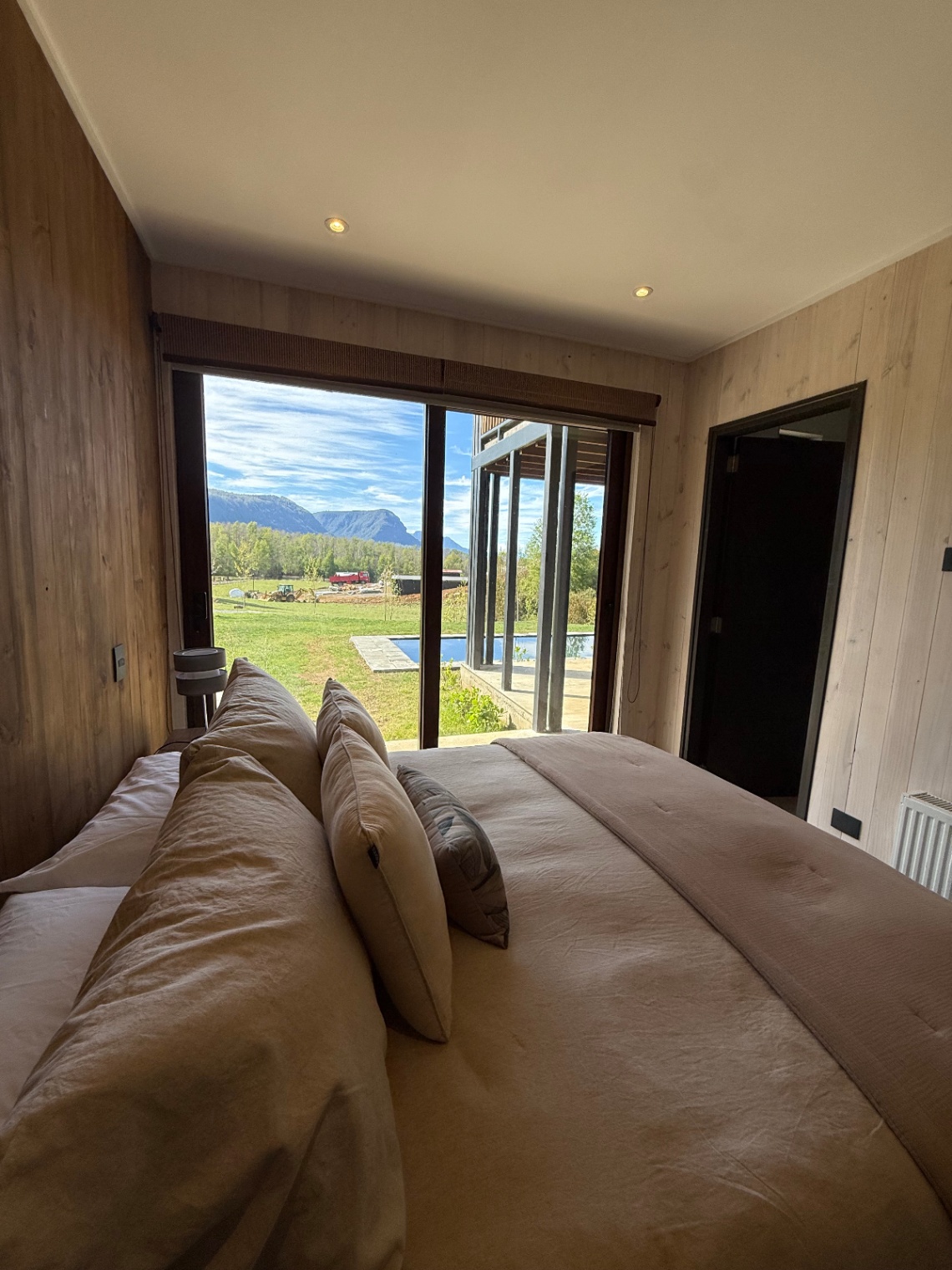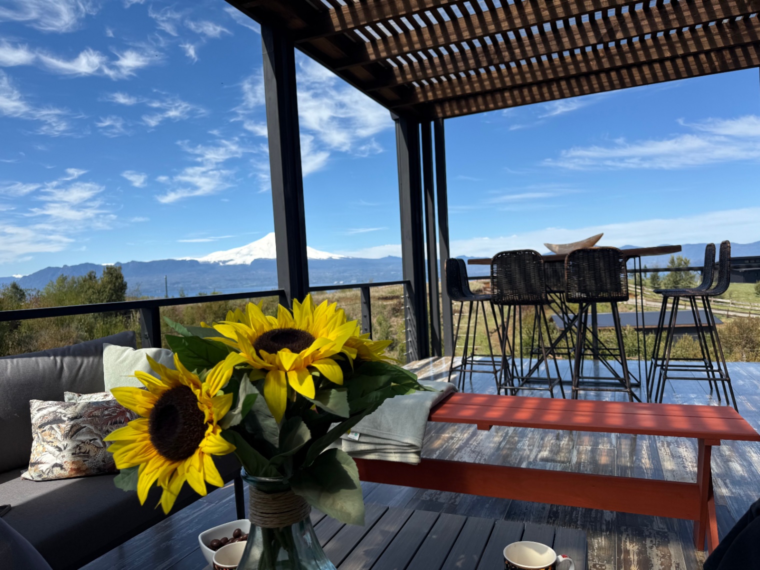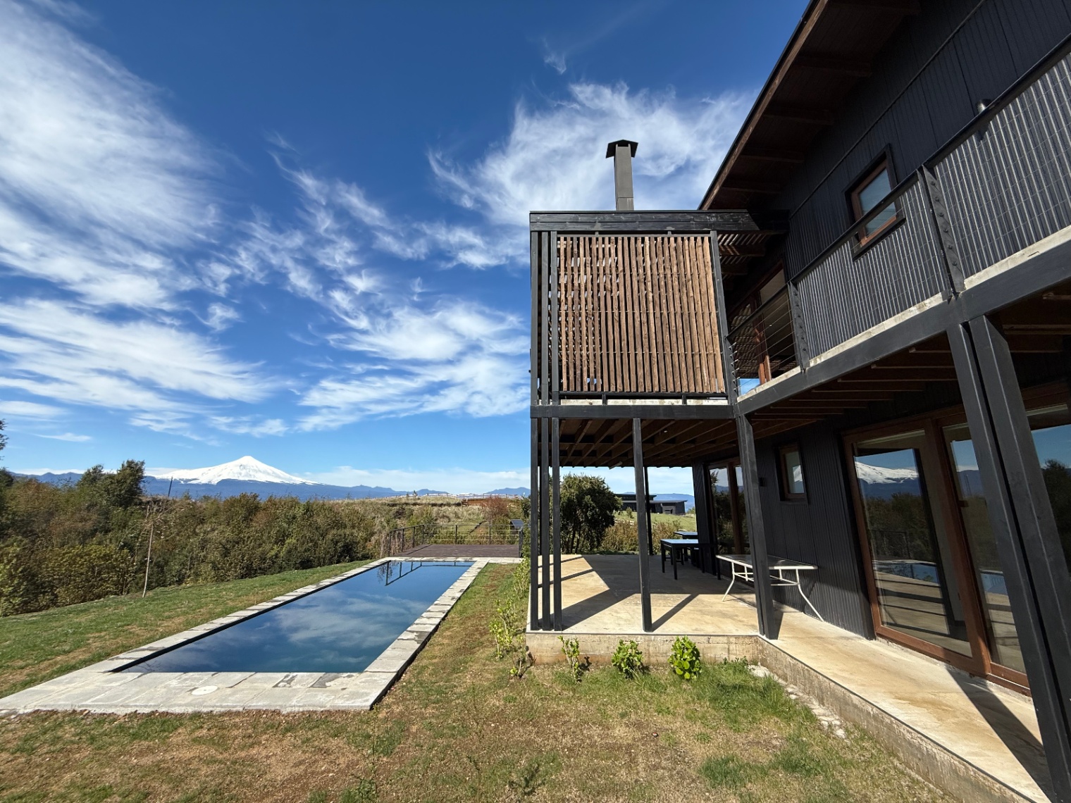 – Vista al lag y al volcán Villarrica
