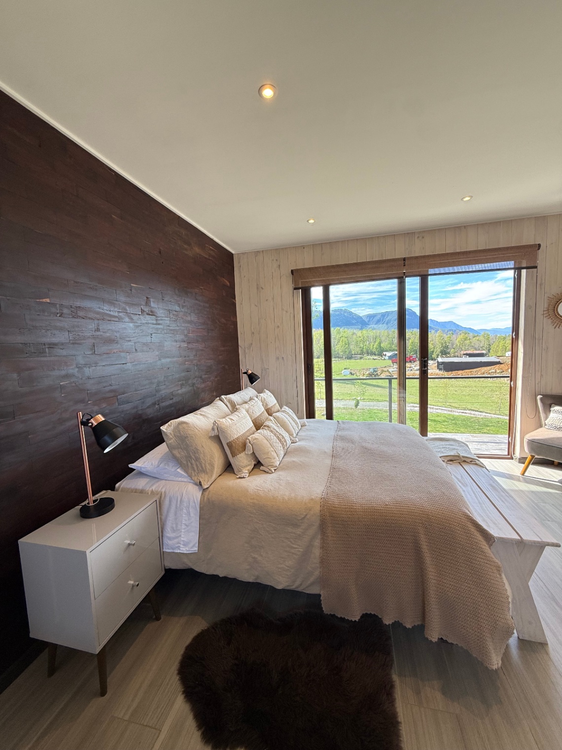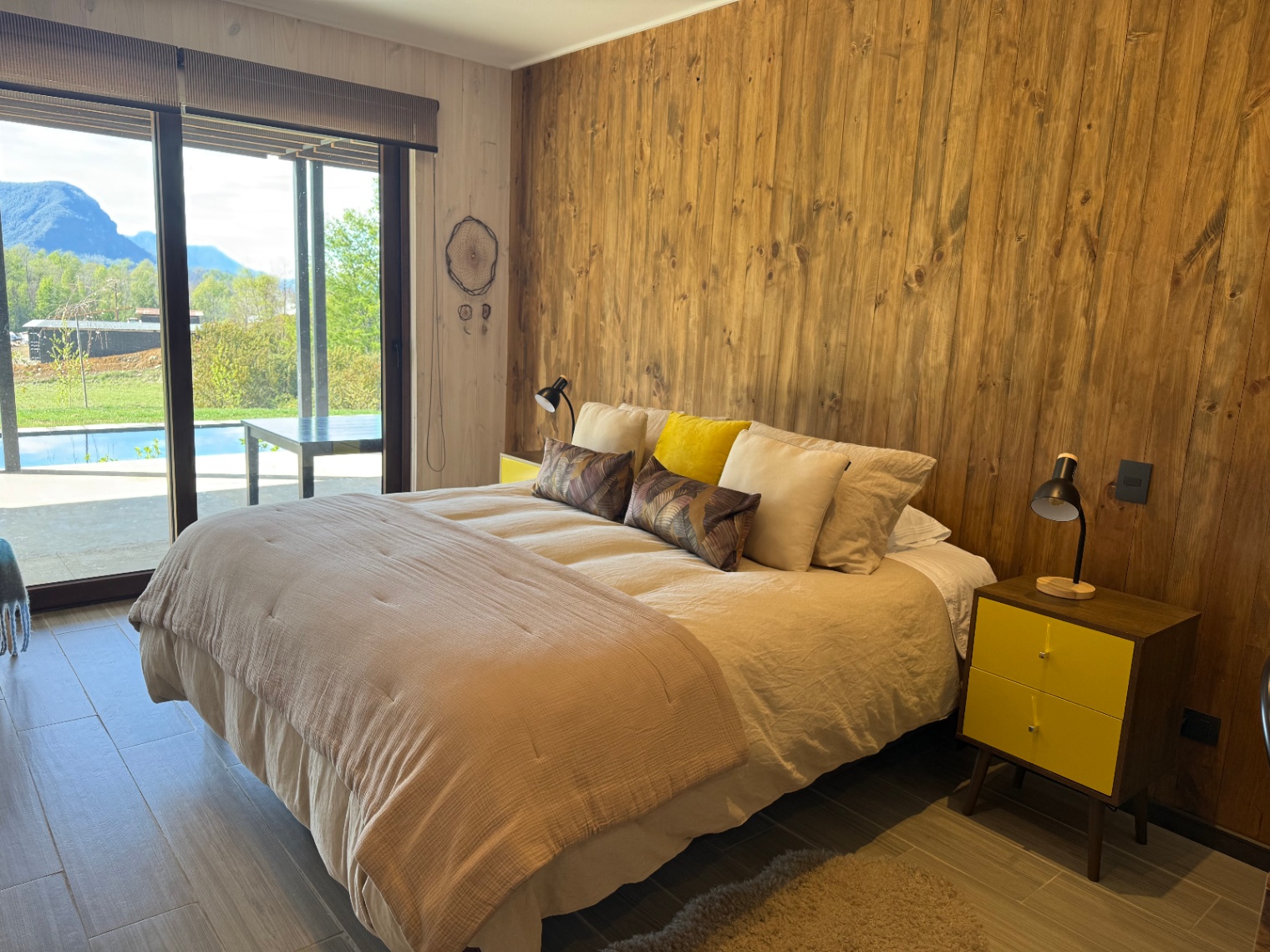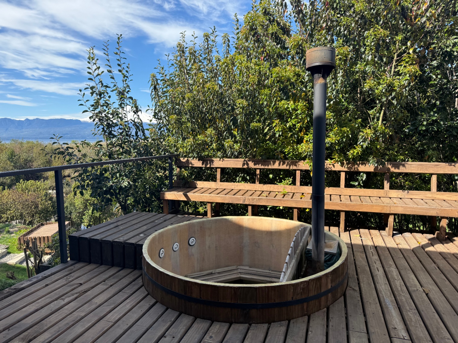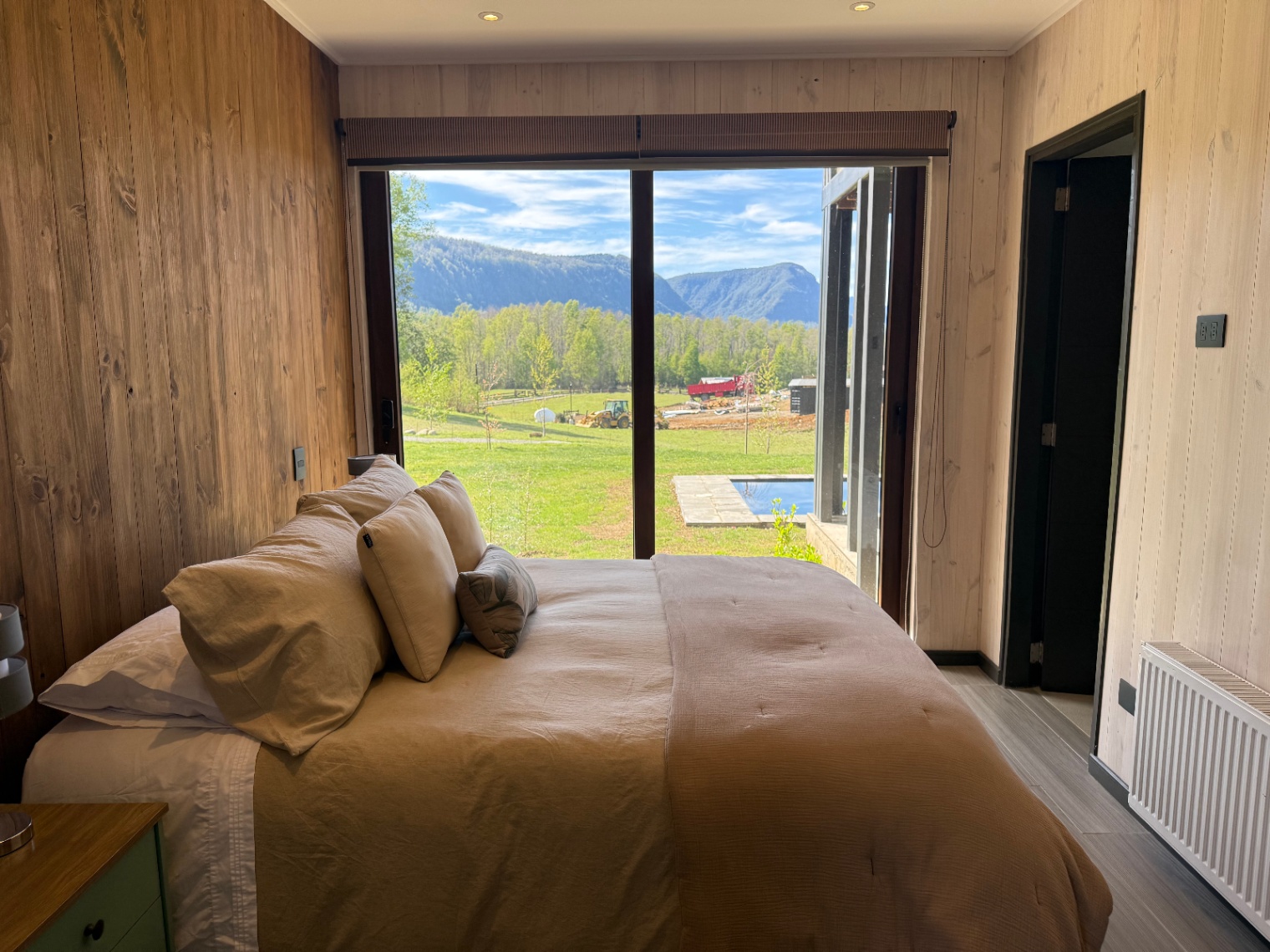 – Vista al lag y al volcán Villarrica