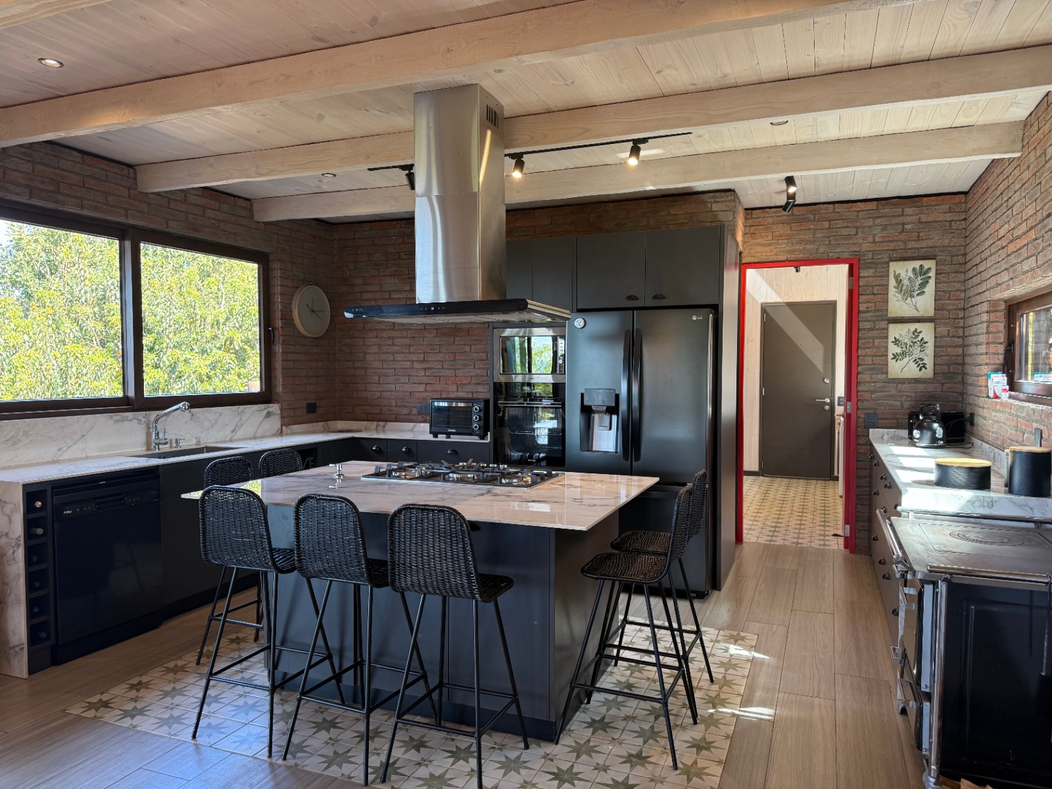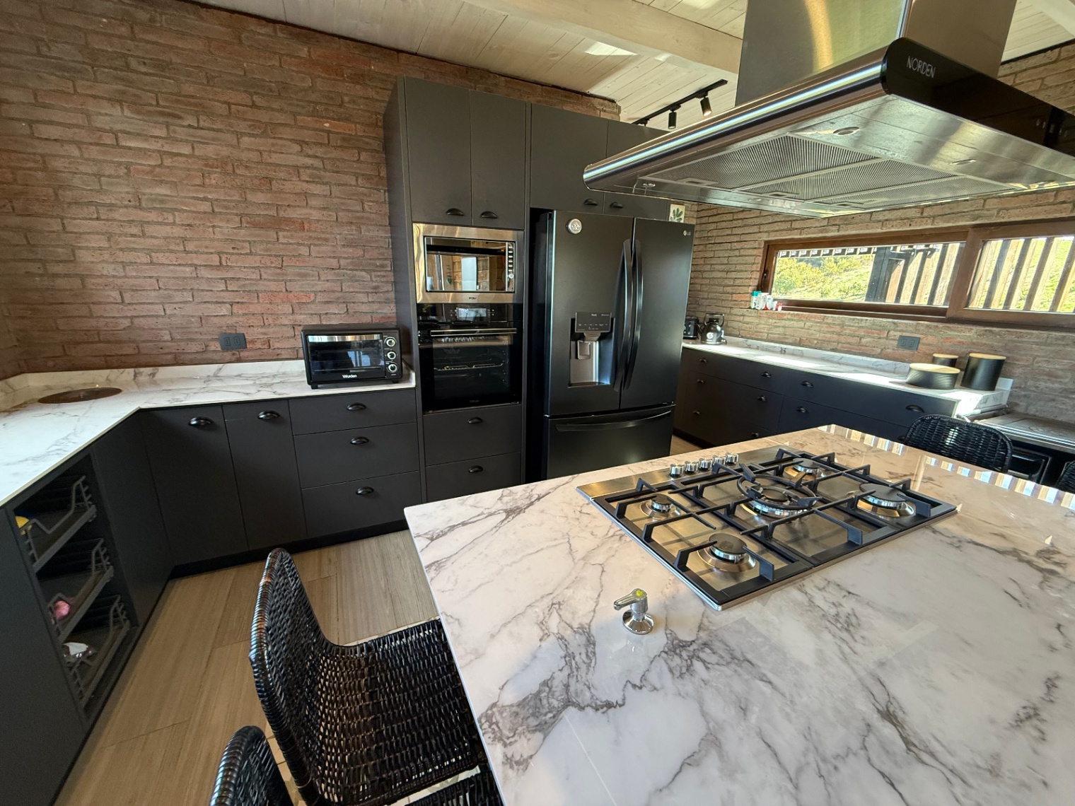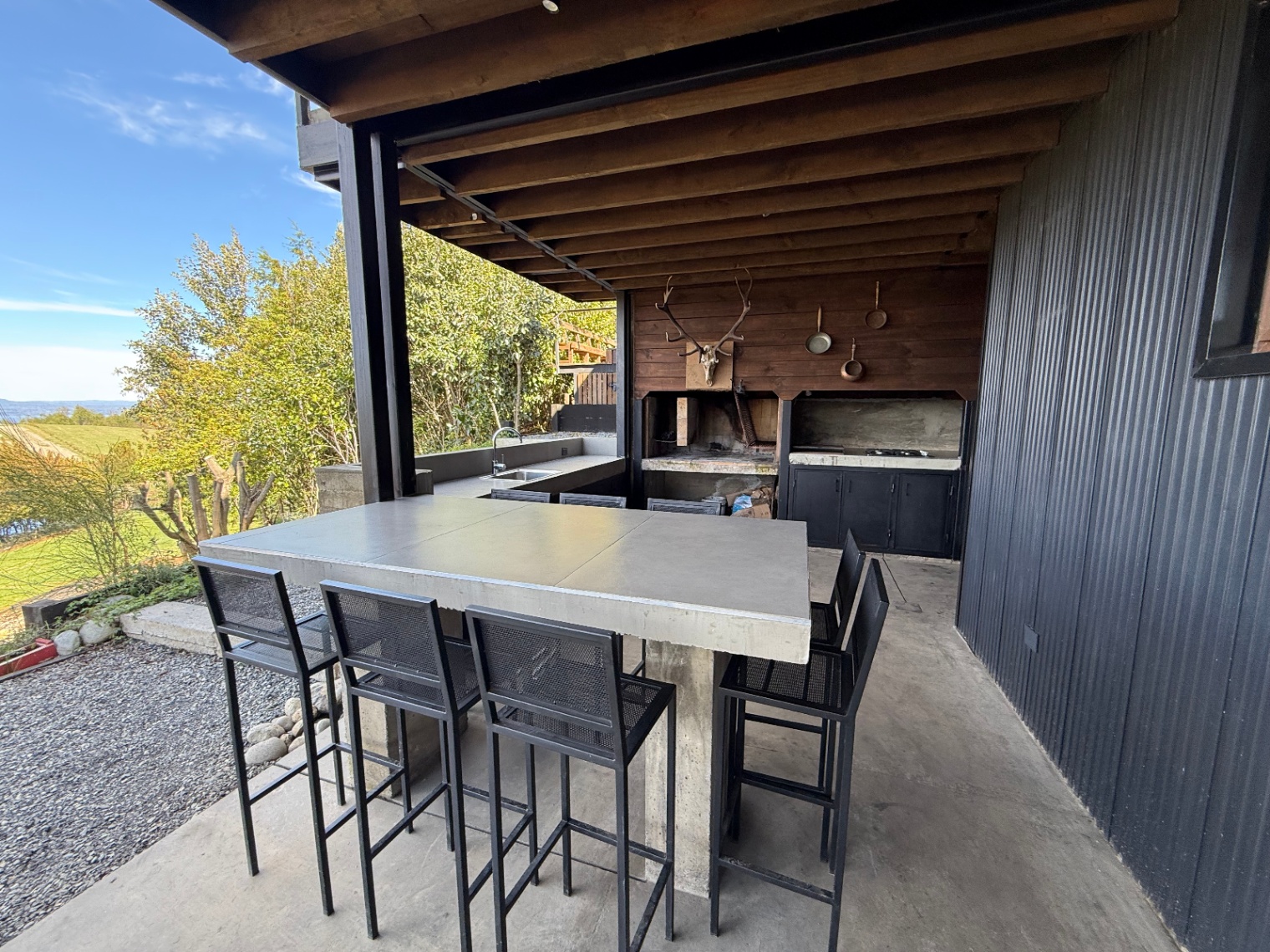 – Terraza con chimenea, cocina y parrilla en obra