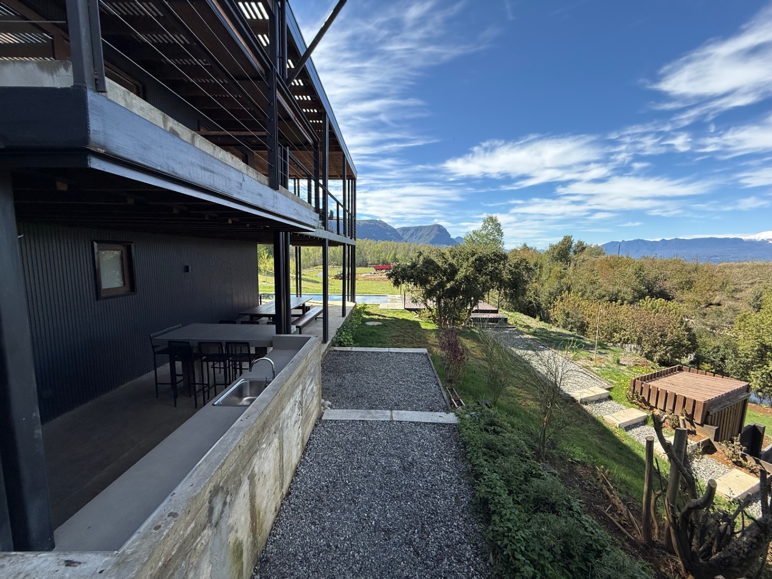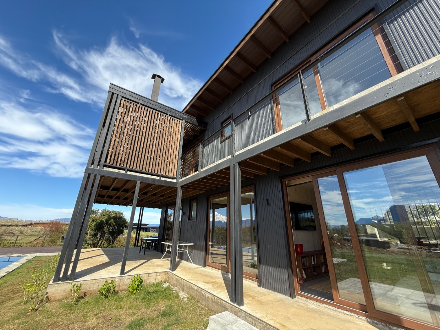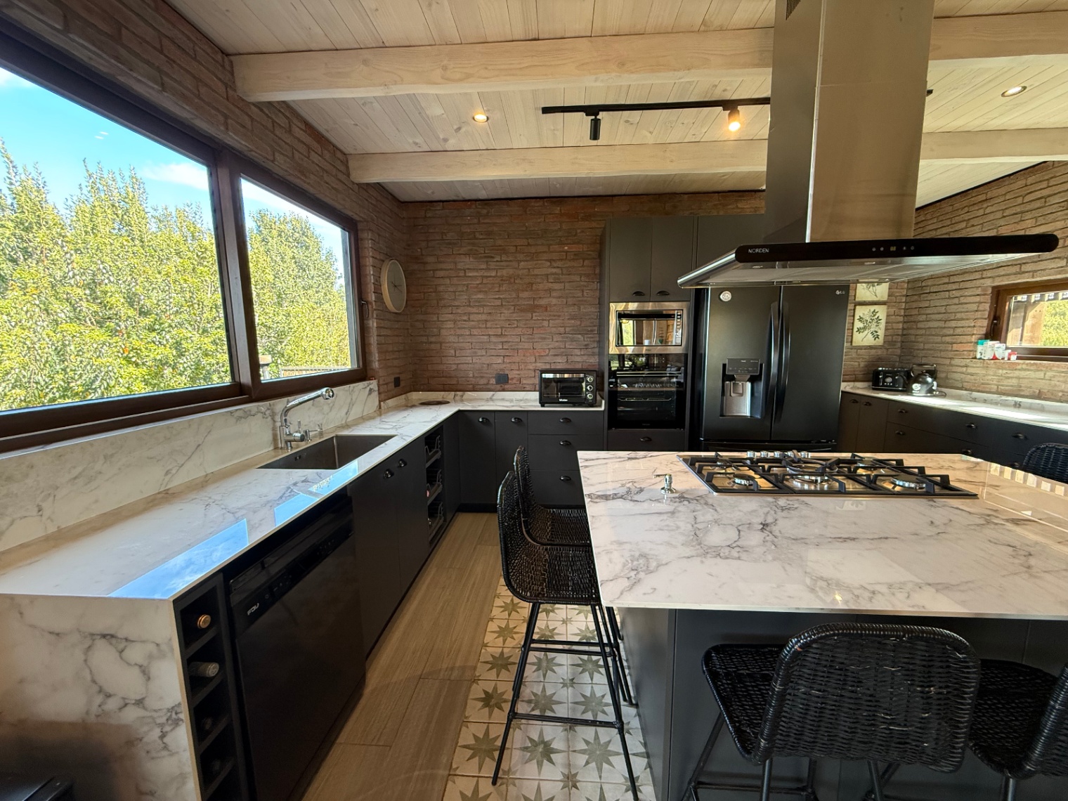 – Terraza con chimenea, cocina y parrilla en obra
